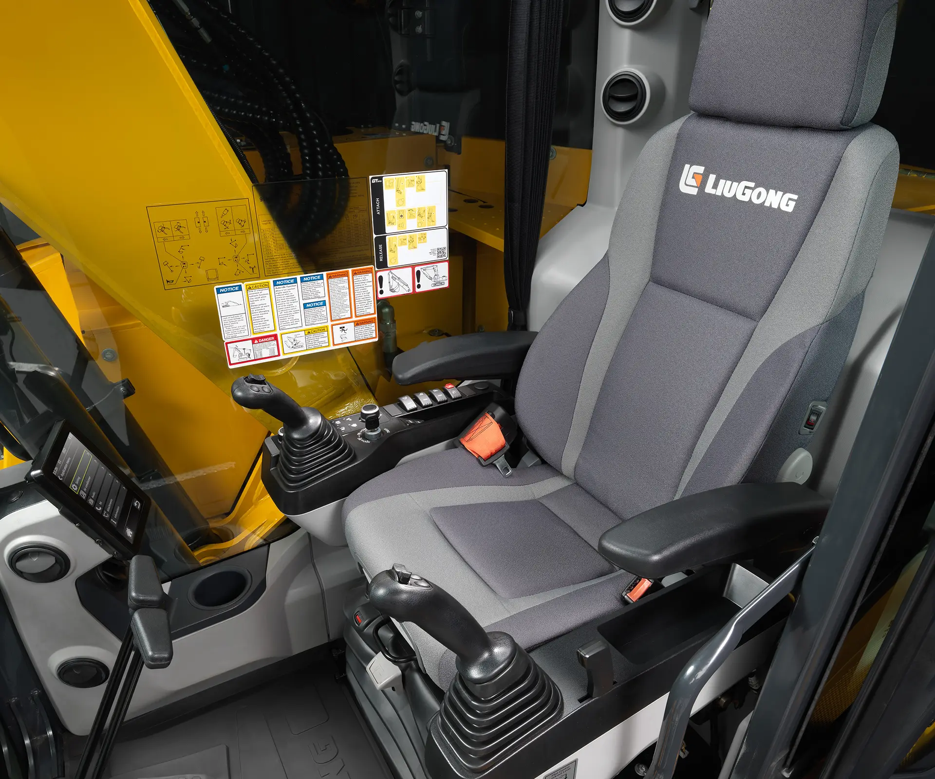 From the ergonomically positioned non-slip pedals to the multi-functional joysticks, the cab interior represents a masterclass in design.